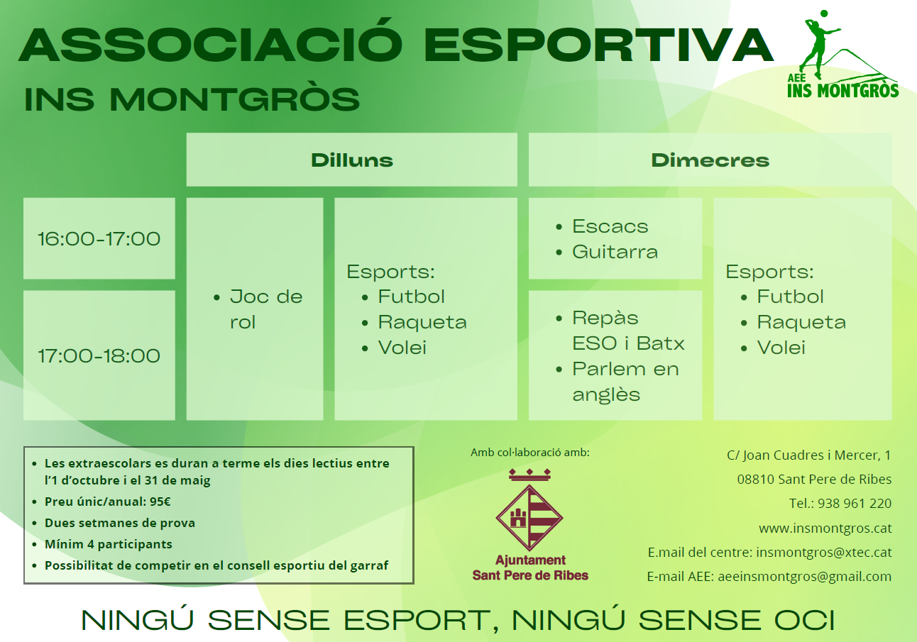 Comencen les extraescolars amb el lema NINGÚ SENSE ESPORT, NINGÚ SENSE OCI